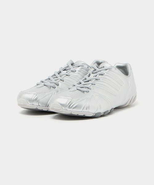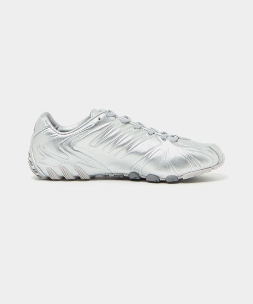 成型レザーアッパー、成型ソックライナー、地面の感触を感じられるような薄型ラバーアウトソールなどの素材を使用して、ユニークなシルエットが完成。