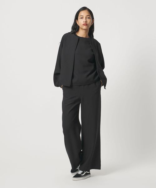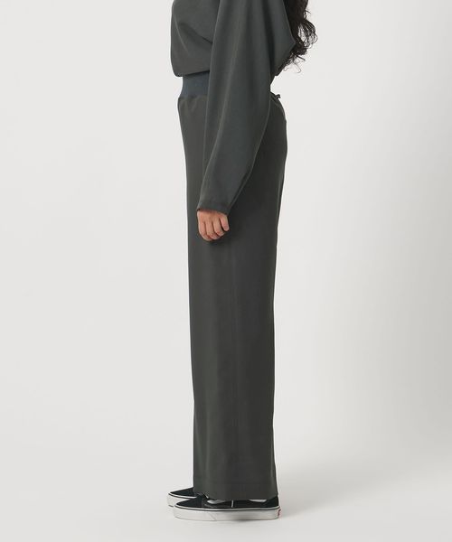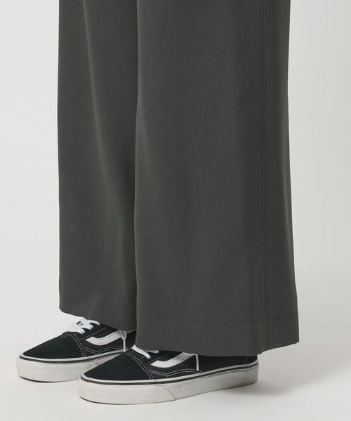 ピンタッククリース入りのきれいなワイドストレートのイージーパンツ。