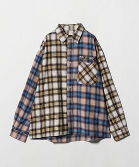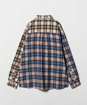 2種類のチェック柄をパーツによってカラーブロックで表現したチェックシャツ。