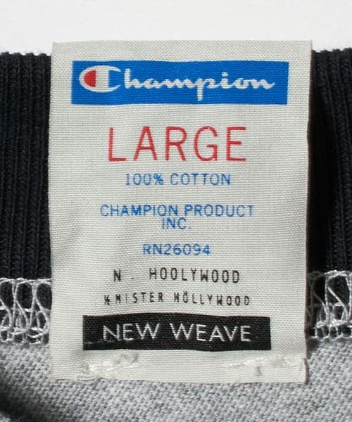 両袖にChampionのCロゴを配置、N.HOOLYWOODのタグに Championのロゴが入ったNEW WEAVE専用タグを製作。