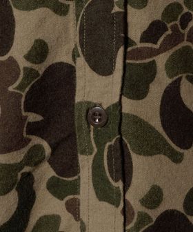 コットンフランネル生地を使用したカモフラージュ柄が印象的なシャツ。