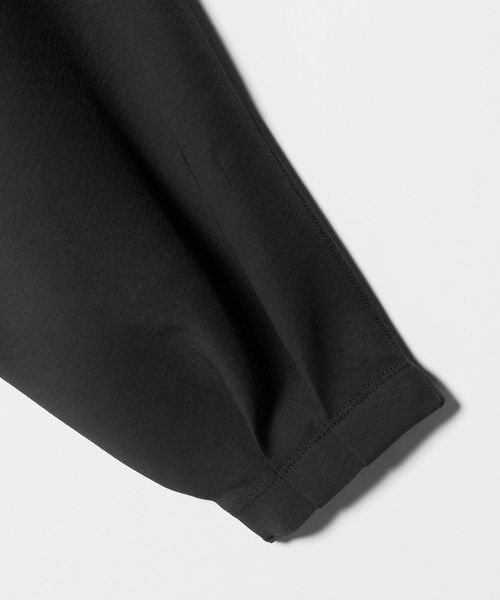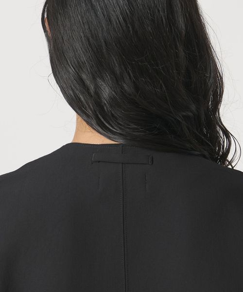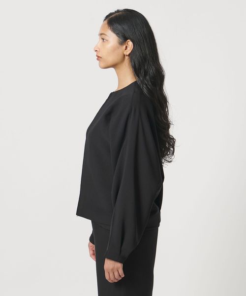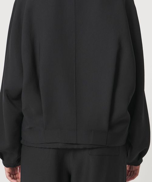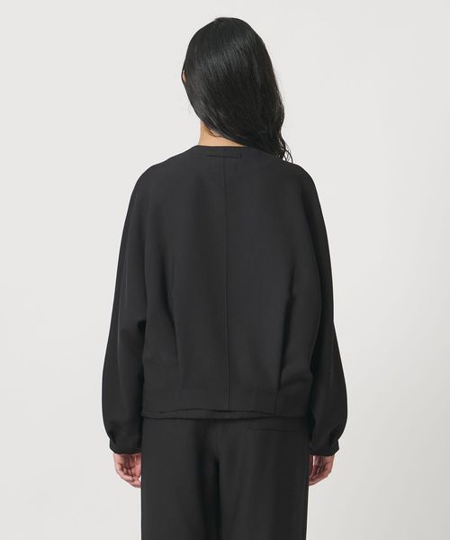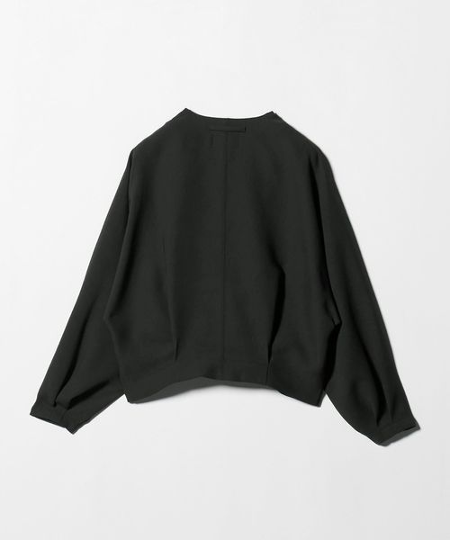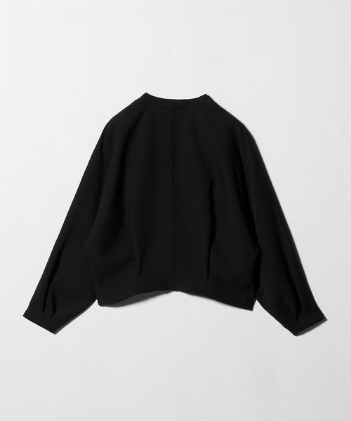 袖口にタックを施したドルマンスリーブと、短めの着丈にバックタックをあしらい、特徴的なシルエットを生み出します。