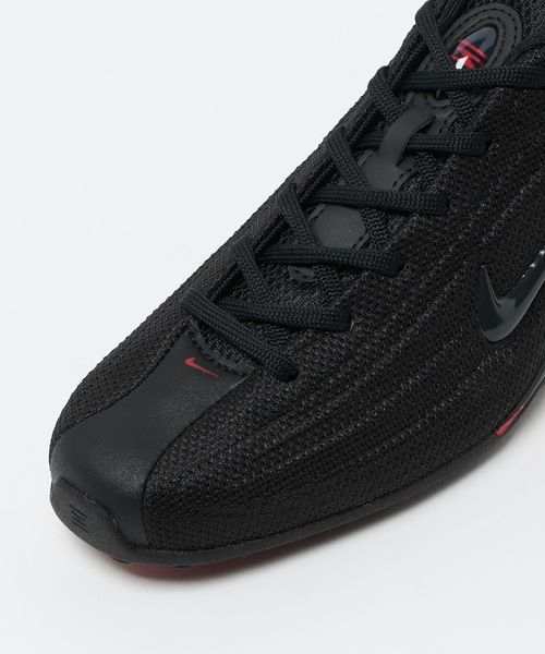 テキスタイルのアッパーに合成皮革のアクセントをあしらい、オリジナルのShoxスタイルを演出。