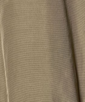 ネックラインを広めに取り、襟元から裏地が覗くアクセントも。