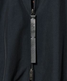 逆開のフロントファスナーは、レザーの引き手にロゴを刻印したN.HOOLYWOODのオリジナルを、ボタンはBARACUTAのオリジナルを使用。