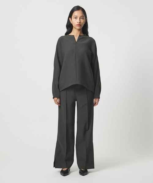 ふわりとした風合いが特徴の素材「+10」を使用した、ハーフジップ仕様の新型クルーネックトップス。