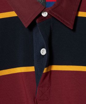 左胸に刺繍があしらわれた、色鮮やかでユニークなラガーシャツ。