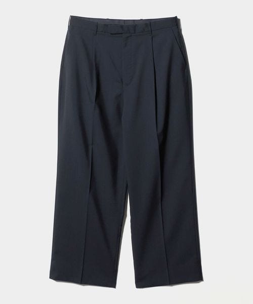 腰まわりにゆとりを持たせた、ワイドストレートシルエットのスラックス。