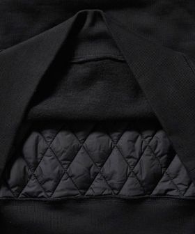 背面にはキルティングを組み合わせ、ブランドネームをあしらった存在感のあるデザイン。