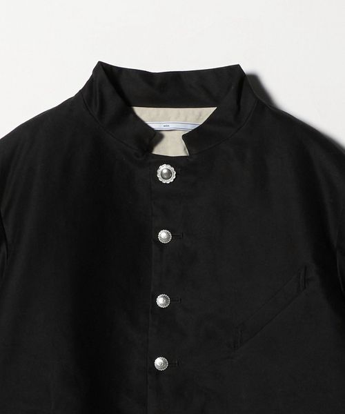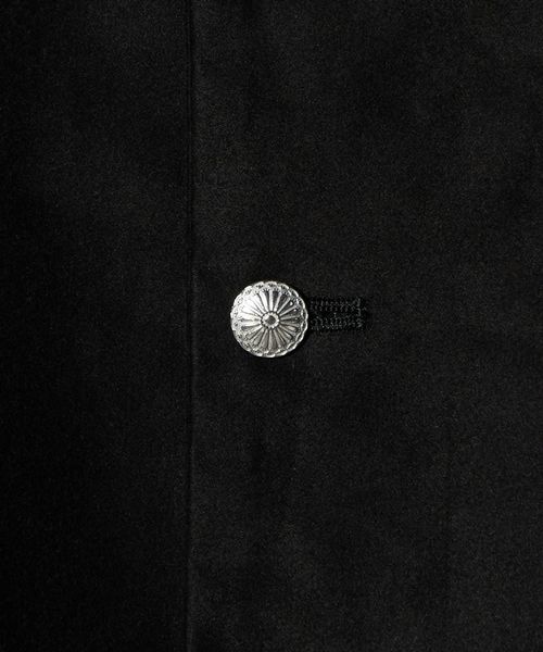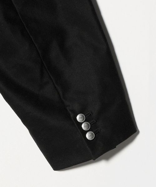 フロントと袖口にあしらったメタリックカラーのボタンが目を引くジャケット。