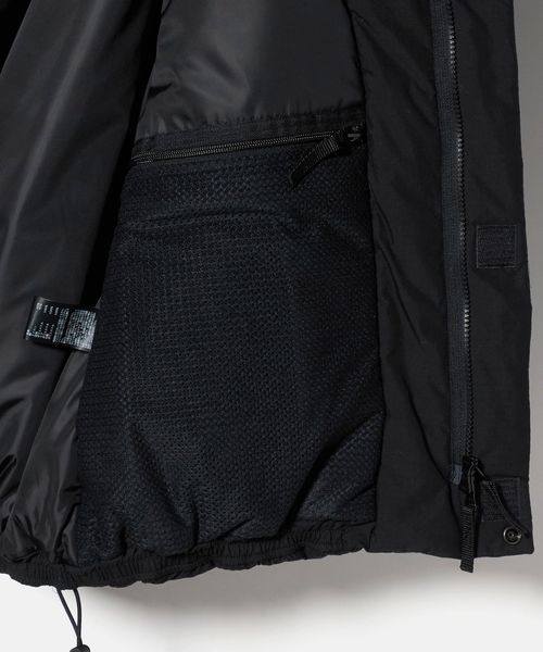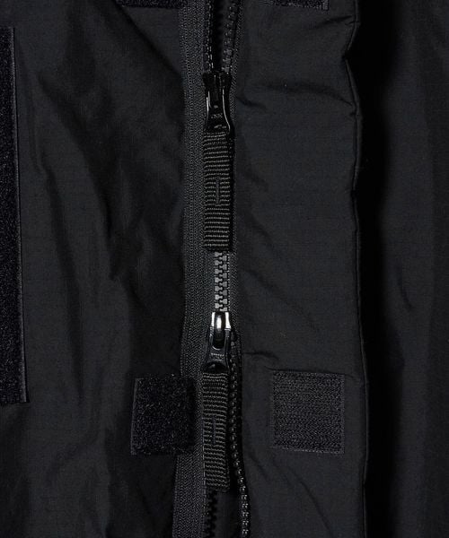 フロントは逆開ファスナー仕様で、前立てにはベルクロを施し、防寒性を確保。
