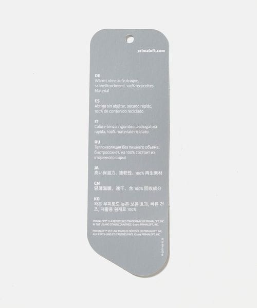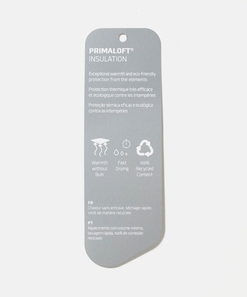 緯糸にコーデュラ糸を使用したリップストップ素材、中綿にはプリマロフトを採用。