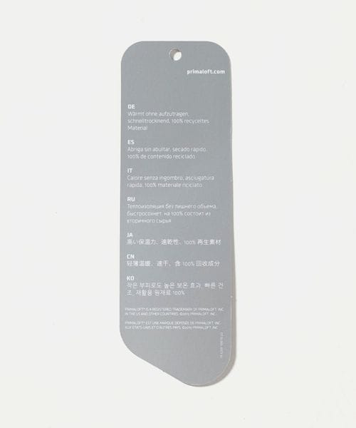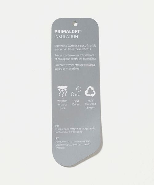 緯糸にコーデュラ糸を使用したリップストップ素材、中綿にはプリマロフトを採用。