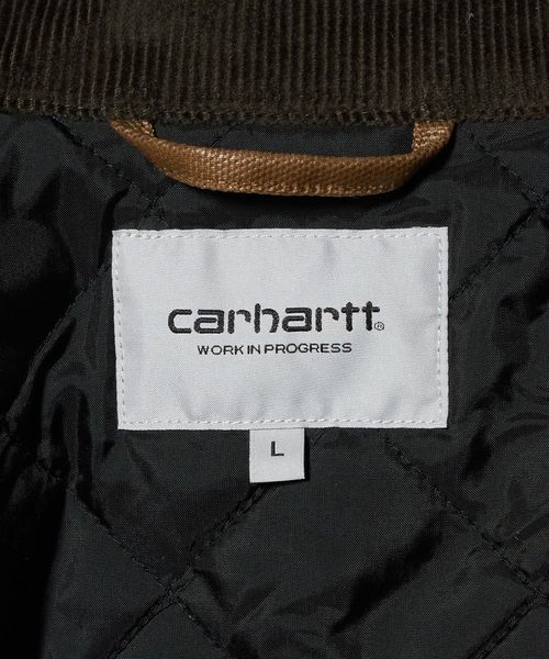 コーデュロイ素材の襟やCarhartt WIPのスクエアラベルがデザインにアクセントを添えます。