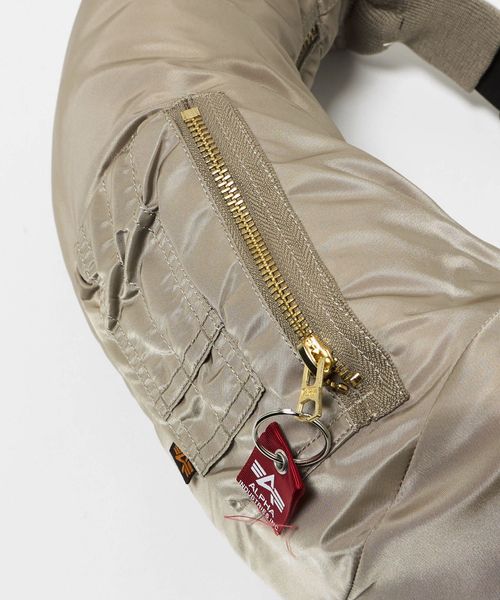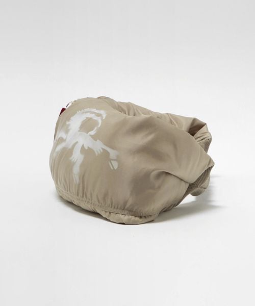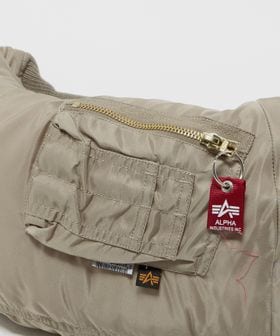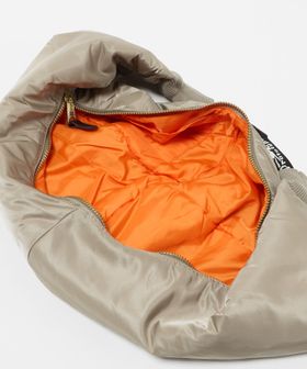 ボンバージャケットのスリーブをモチーフにしたユニークなショルダーバッグ。