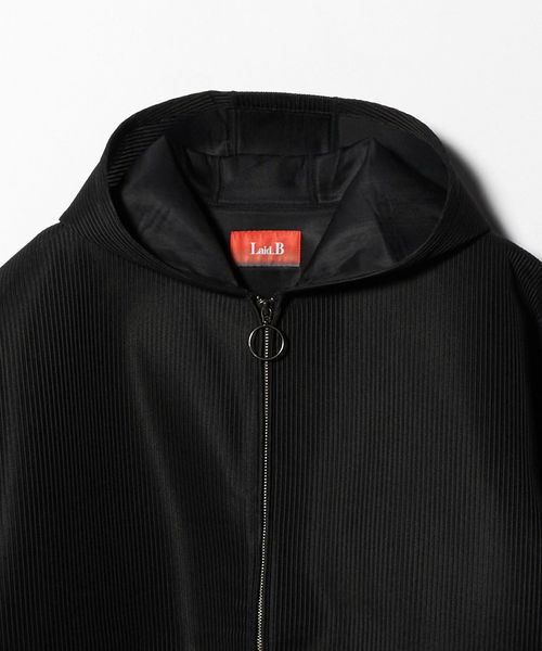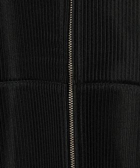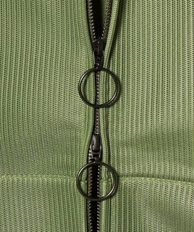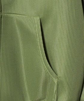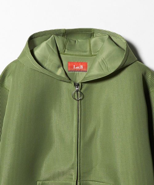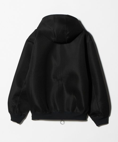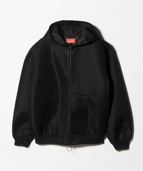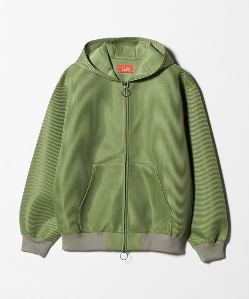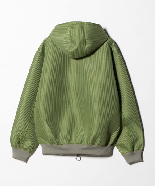 縦に組織の柄が見えるダブルラッセル生地を使用したフルジップフーディ。