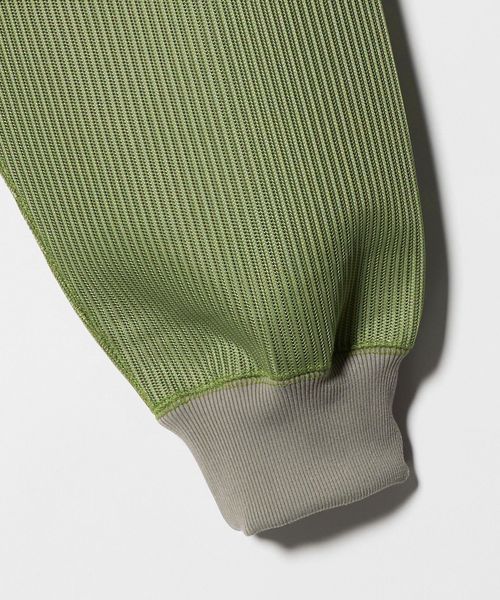 ハリのある素材を活かし、リブの締め具合と2枚袖により丸みのあるシルエットになるように設計。