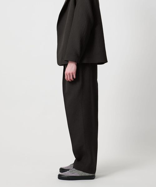 新素材のフクレ三重織りを使用した、新型ピンタック クリース入りの1プリーツイージーパンツ。