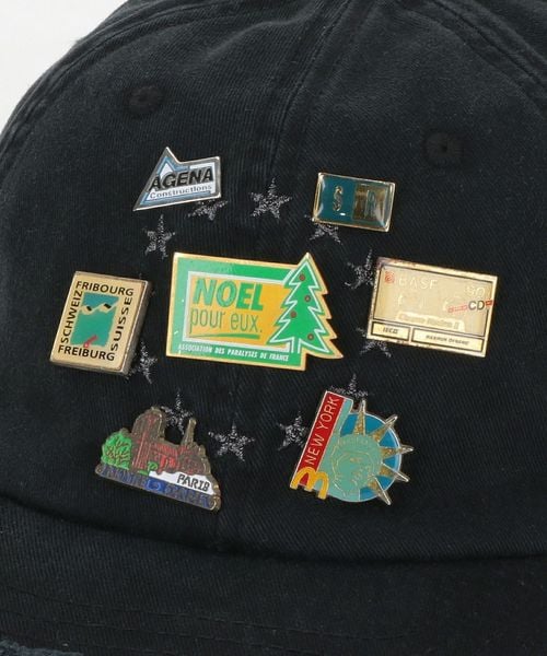 フロントにピンズとスターモチーフの刺繍をあしらったキャップ。
