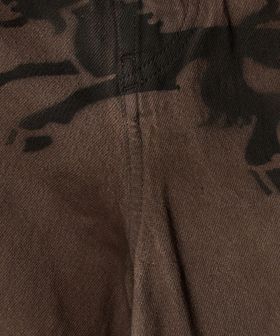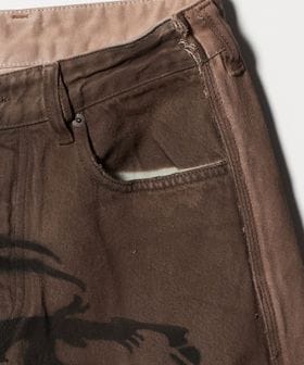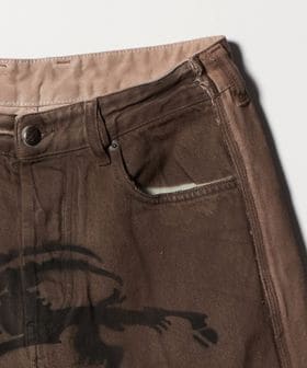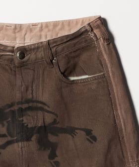 フロントのスプレープリントが印象的なデニムショーツ。