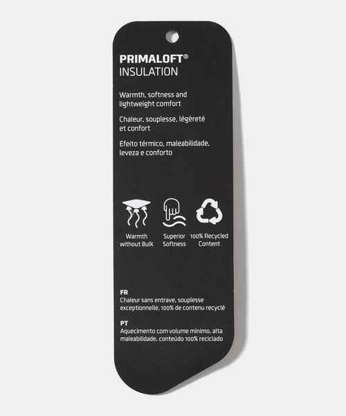 前立て内側にオリジナルミルスペックを配置、軽くあたたかなプリマロフトを封入。