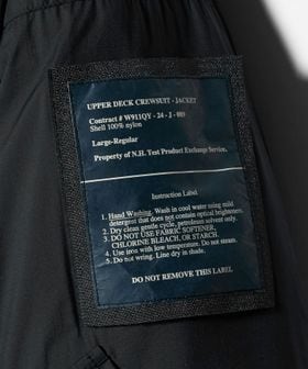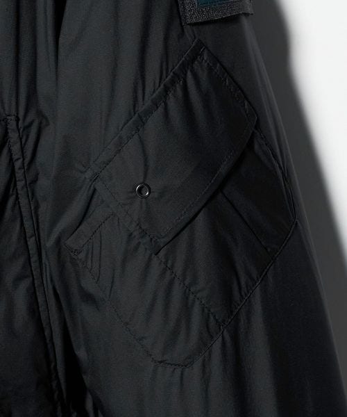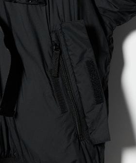 極地での着用や荒天時の作業用など、防護服に分類される英国海軍のアッパーデッキクルースーツから着想を得た中綿ブルゾン。