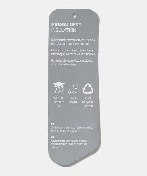 軽くあたたかなプリマロフトを封入、ベルクロ仕様の可動式ミルスペック付き。