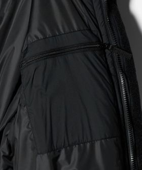 フロントは逆開ファスナー仕様で、前立てにはベルクロを施し、防寒性を確保。