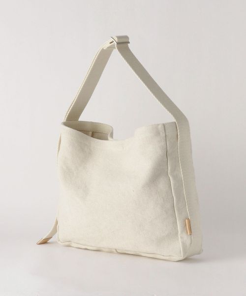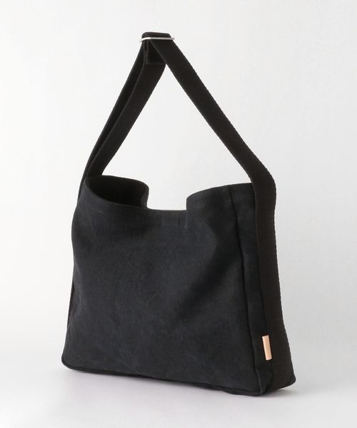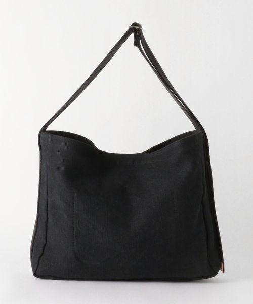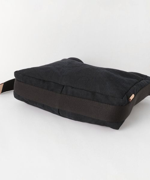 厚手のツイル素材を使用したスクエア型のショルダーバッグ。