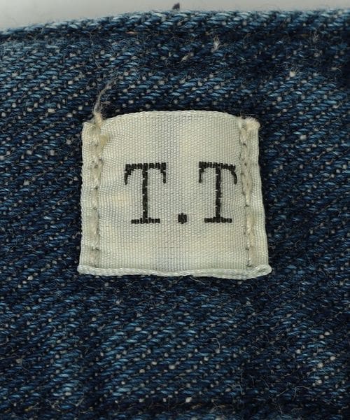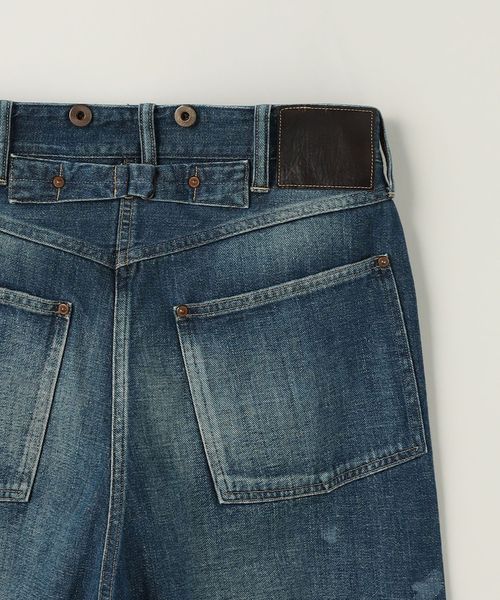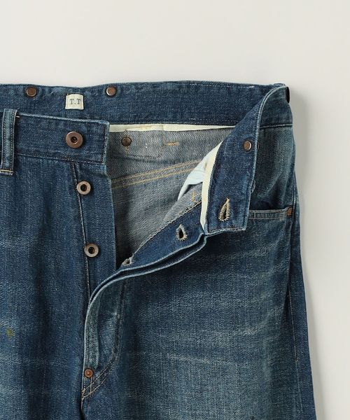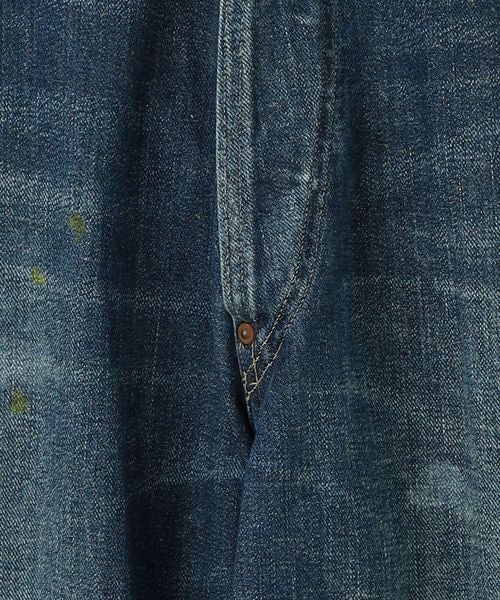 1920年代頃の<Taiga Takahashi>の代表作「LOT.704 デニムトラウザーズ」のダメージ加工とペイント加工が施されたデニムトラウザーズ。