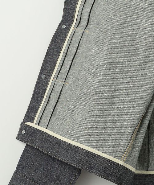 生地は白耳セルビッジデニム生地で、フロントフラップや袖口裏など各所に白耳を使用。