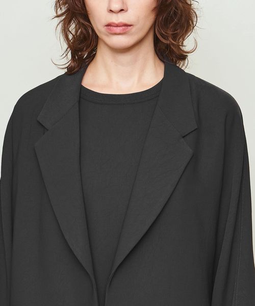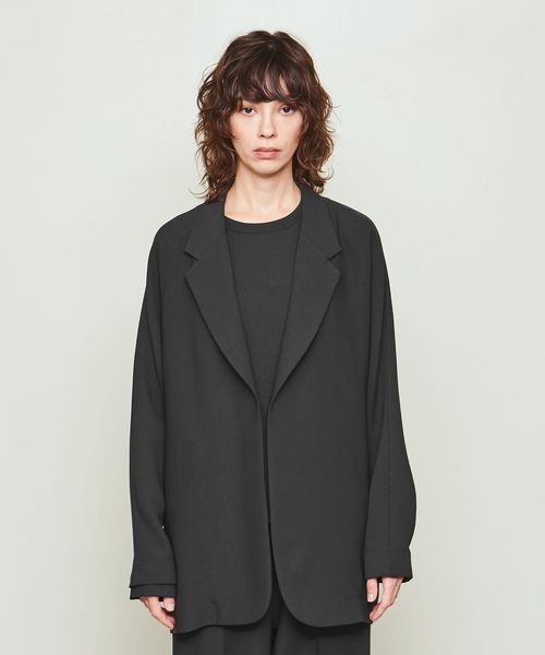 フロントボタンレス仕様のノッチドラペルジャケット。