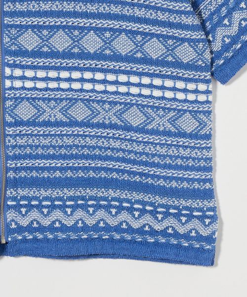 清涼感のある素材使いとカラーリングで、夏のノルウェー・ニットを表現。