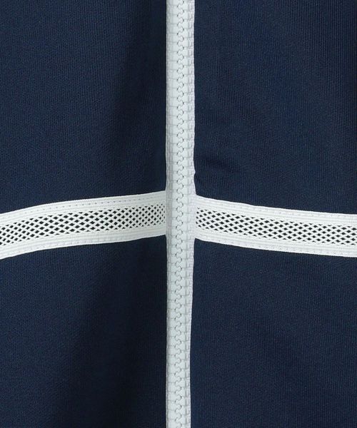 左胸のロゴパッチ、ファスナーのロゴパーツが目をひく、モダンなデザインの一着。