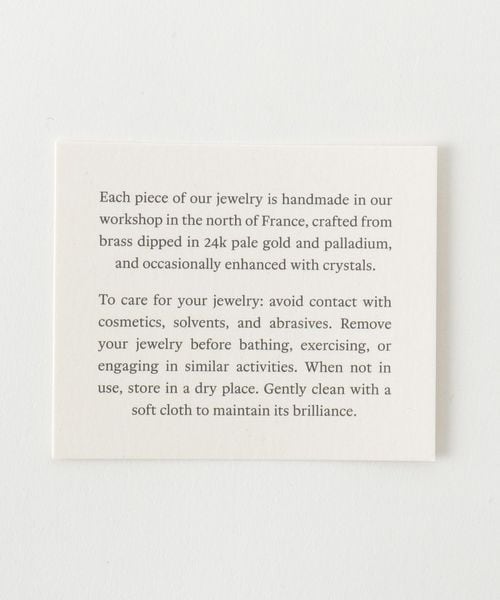 パリのアトリエにて1点ずつハンドメイドで生産されているアクセサリーはブロンズやアンティーク加工のシルバーチェーンやヴィンテージ素材に、彼女独特のセンスを加えることによってコンテンポラリーに昇華しています。