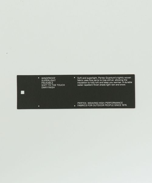高機能素材「PERTEX」に、ブランドが開発した軽く耐久性に優れたソフトな風合いの高密度素材「PERTEXQUANTUM」を使用。