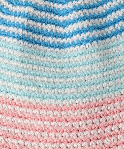 マルチストライプ柄が目をひくクロシェハット。