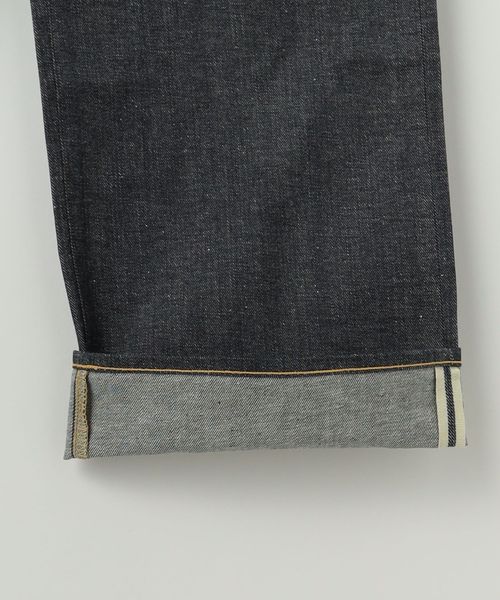 股下はかなり深く、脇下から裾にかけて真っ直ぐに落ちる太めのシルエットのジーンズ。