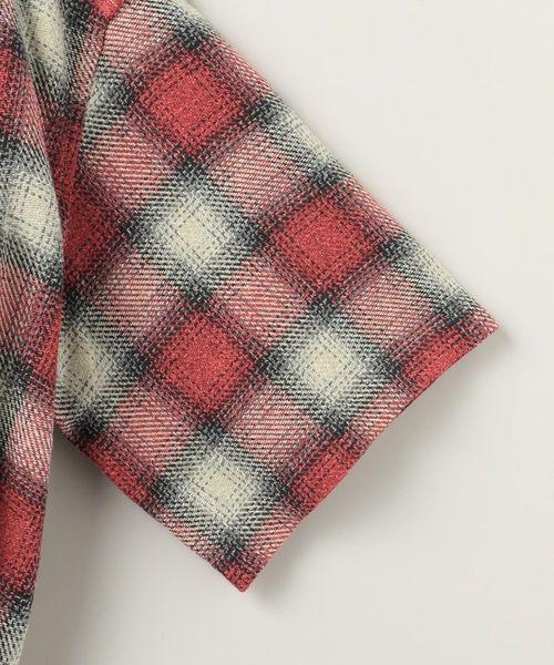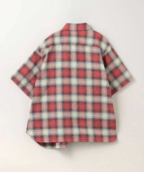 アシンメトリーな裾デザインが特徴のチェック柄のショートスリーブシャツ。