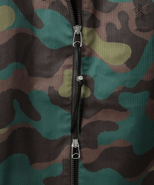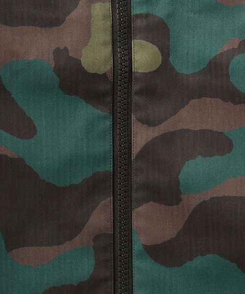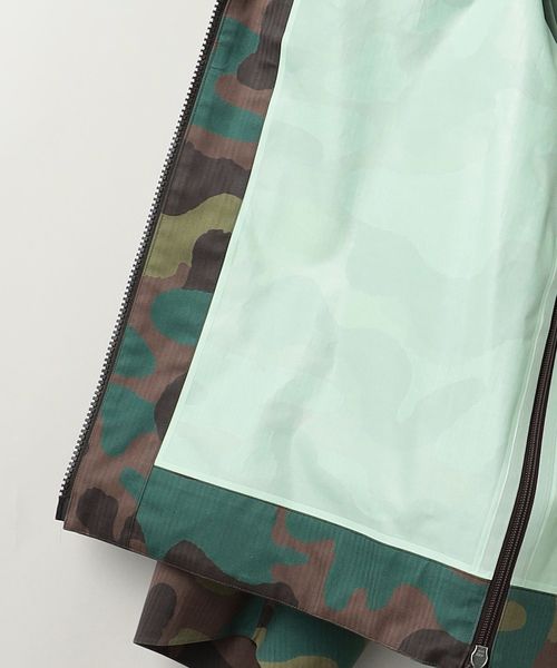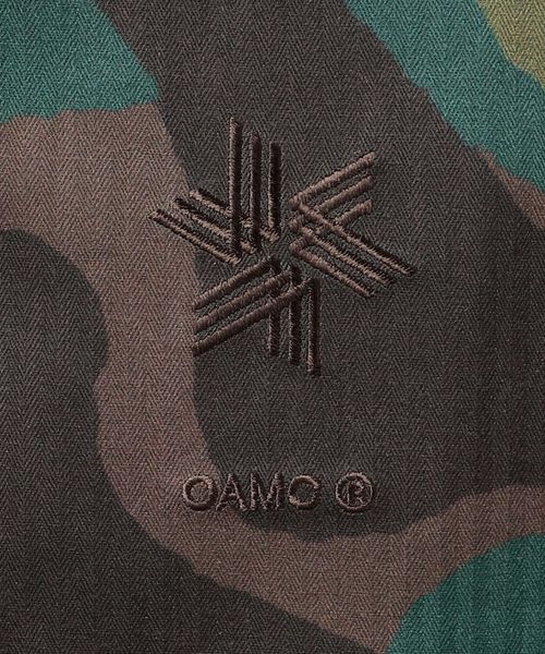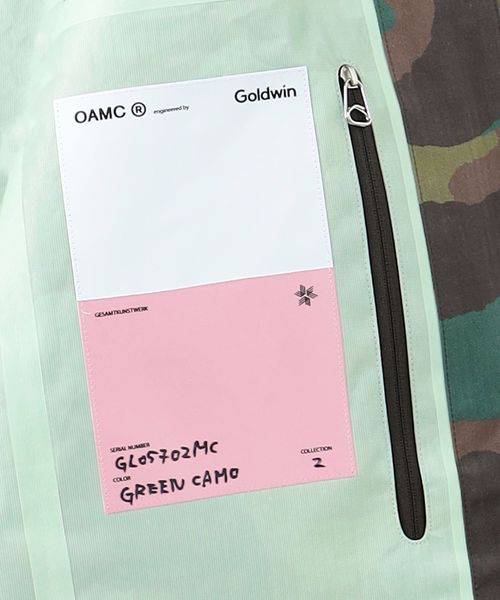 <OAMC>の視点を反映したカモフラージュ柄、裏面のトリコットもまた、このコラボレーションのために染色したミントグリーンとなっています。