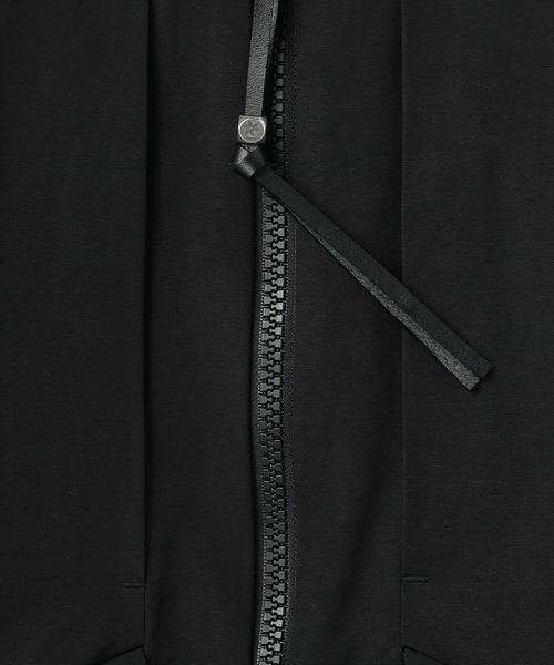 フロントファスナーに取り付けた、レザーとメタルキューブを組み合わせた引手は、コレクションを象徴する意匠です。