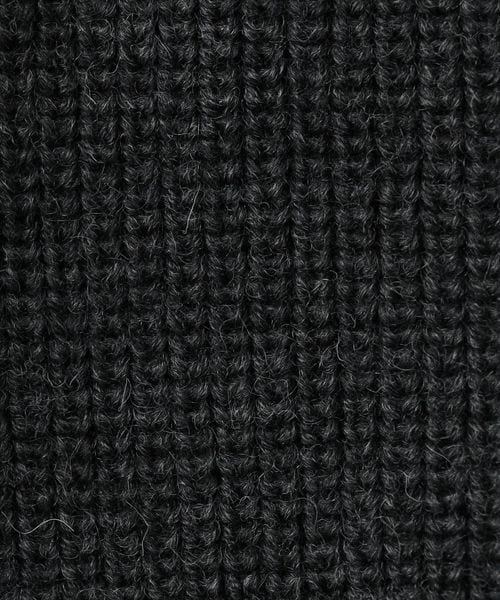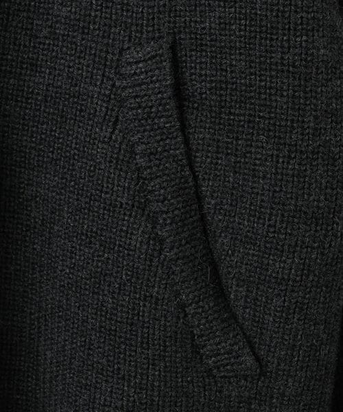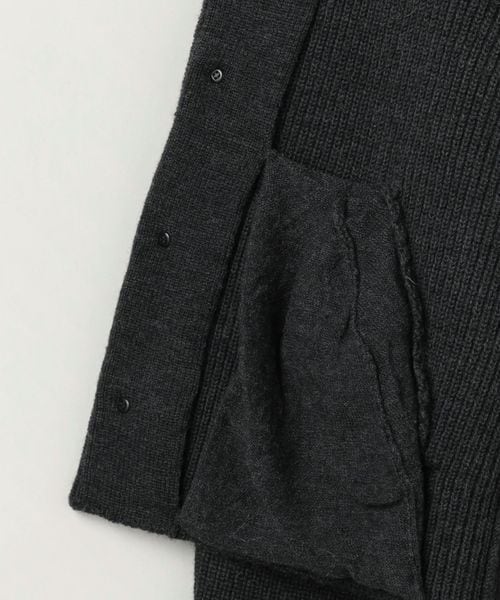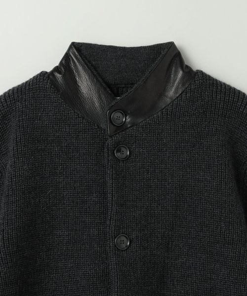 スタンドカラー部分にレザーを配したカーディガン。