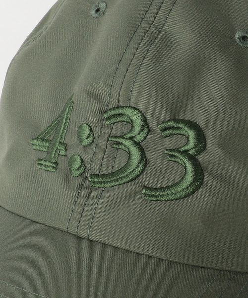 「4:33」の刺繍が施された、ナイロン素材の6パネルキャップ。
