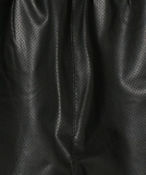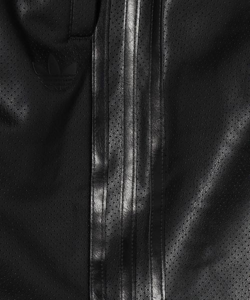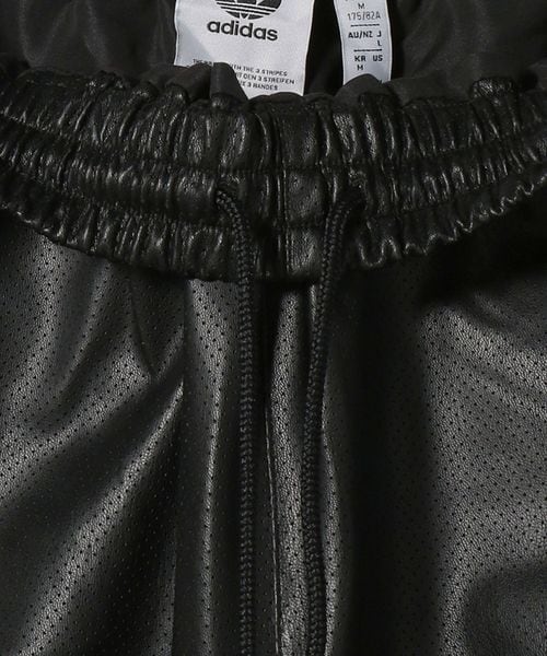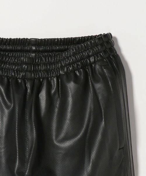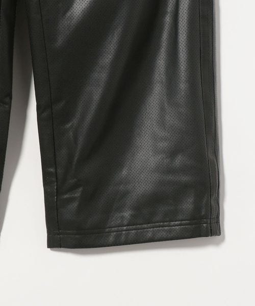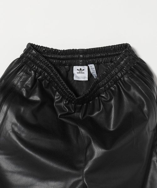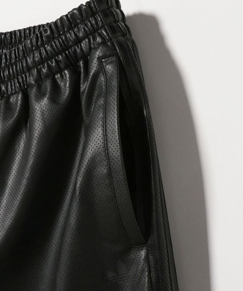 スポーティーなジャケットを合成皮革で遊び心のあるデザインに仕上げられたトラックパンツ。