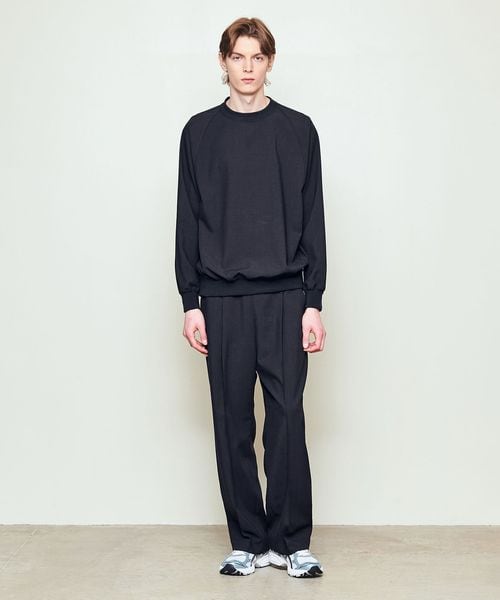 衿・袖口・裾にリブがついたフリーダムスリーブのスウェットシャツ型。
