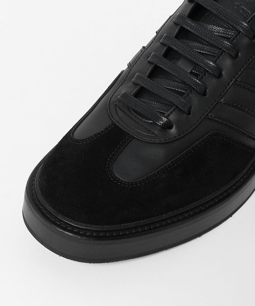 ツーリングにレザーを重ねたドレッシーな仕上がりを見れば、職人が丹念に作り上げたクラシックスニーカーであることがわかる、シュータン周りのエッジとシューレースを通すオーバーレイまでしっかりとペイントが施された、ていねいな作り。