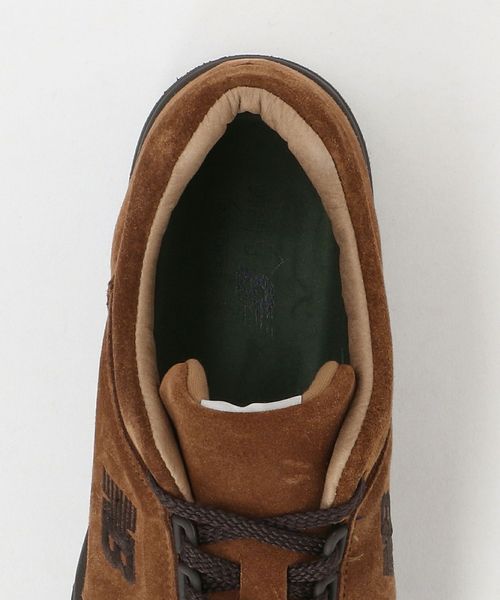 ブラウンカラーのスエードアッパーにフライングNBロゴを刺繍。