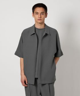 フロントボタンレスで衿の開き具合が特徴的なショートスリーブのコーチシャツ型。