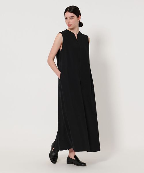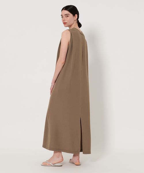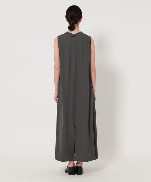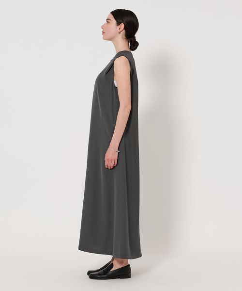 前後肩に深いタックを配することで身体のラインを拾わず、フレアのデザインで着心地もUPさせた夏にぴったりのワンピース。