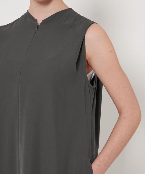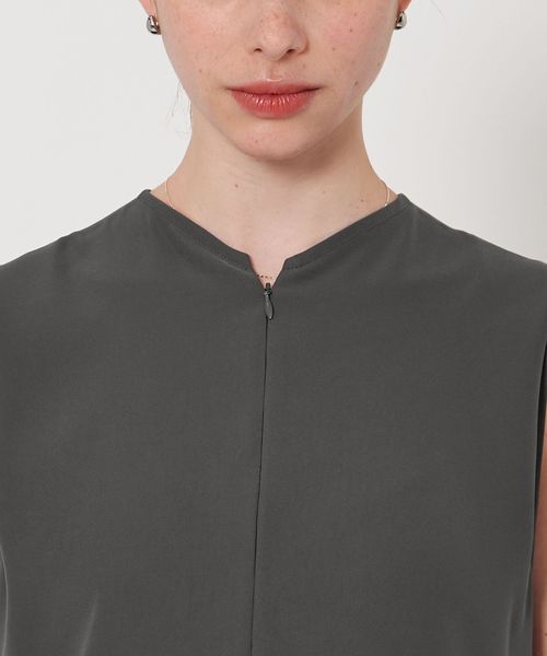 フロントはコンシールファスナー仕様、お好みに合わせた胸元あきでの着こなしが可能。